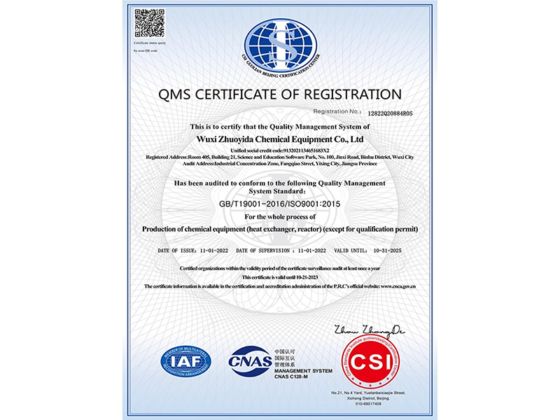 無錫卓億達化工裝備有限公司 質量合格、誠信經營、互惠互利、真誠相待